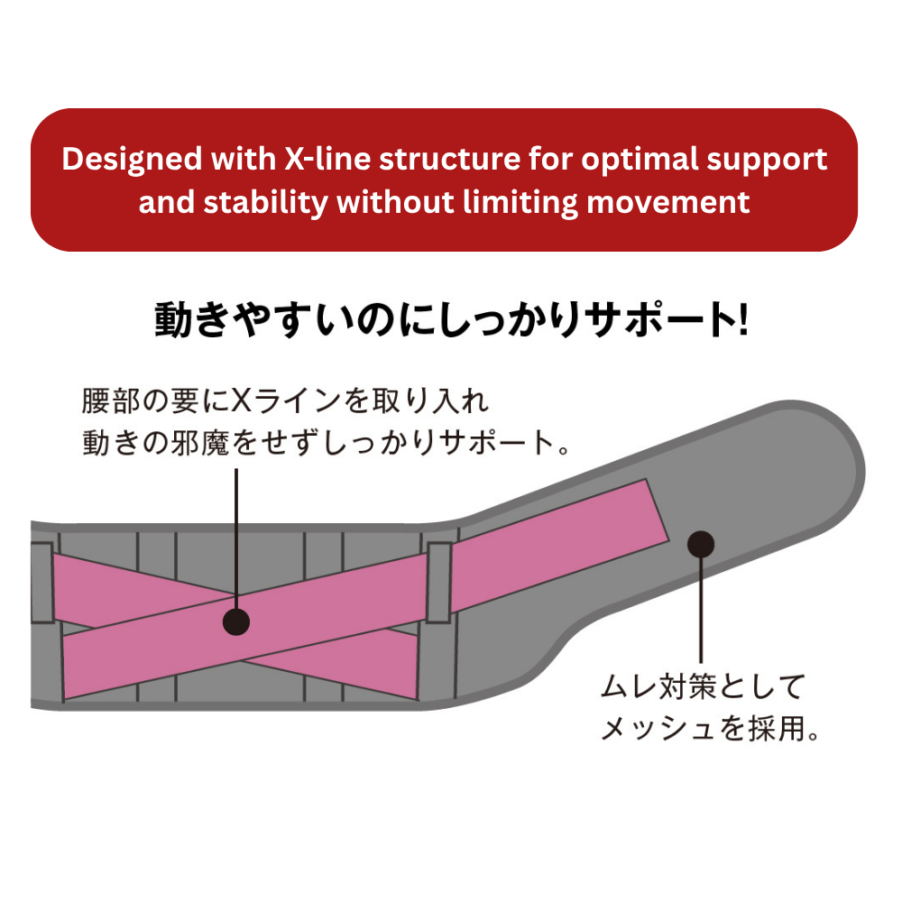 ・Designed with X-line structure for optimal support and stability without limiting movement.